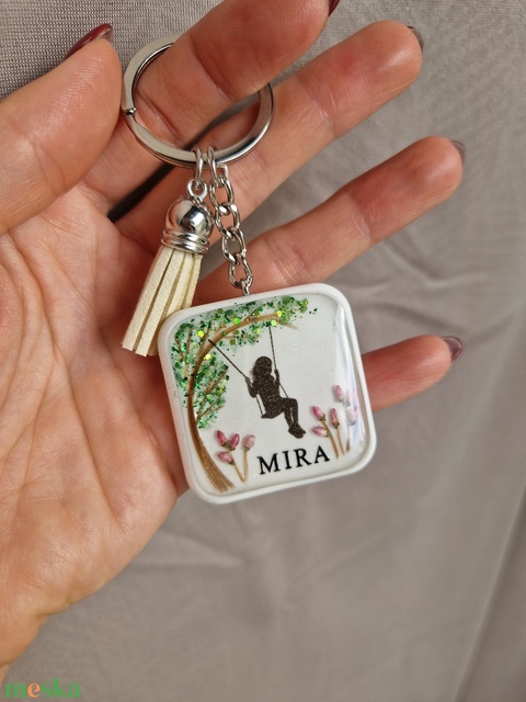 - Anyaga: műgyanta, szerelékek, csillám, hajtincs, kulcstartó alap, szárított virág