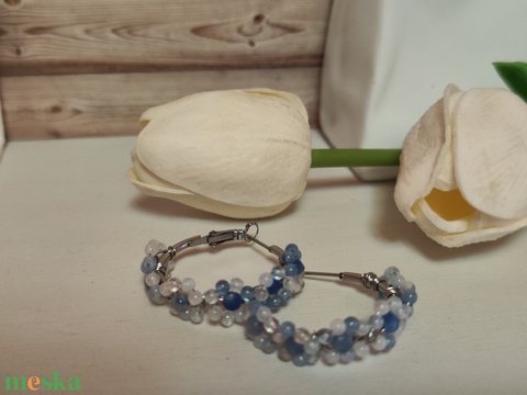 Nemesacél fülbevaló Akvamarin virágokkal!