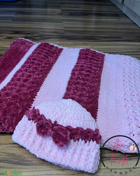 Málnás habcsók babaváró szett. Ajándékozz melegséget, kézzel készült babatakaró szett