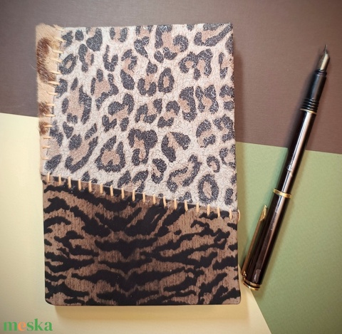 Vadmacska mintás patchwork bőrkötèsű napló A6