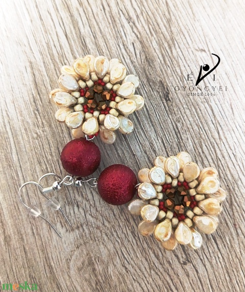 Bordó és elefántcsont színű virág fülbevaló