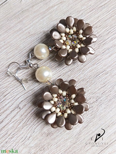 Mogyoróbarna színű virág fülbevaló