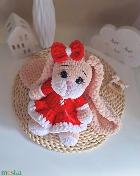 Horgolt nagyfülű nyuszi ünnepi ruhában