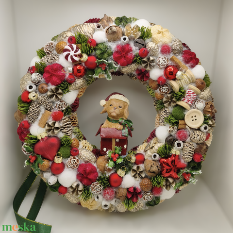 Karácsonyi kopogtató, koszorú 30 cm kutyussal