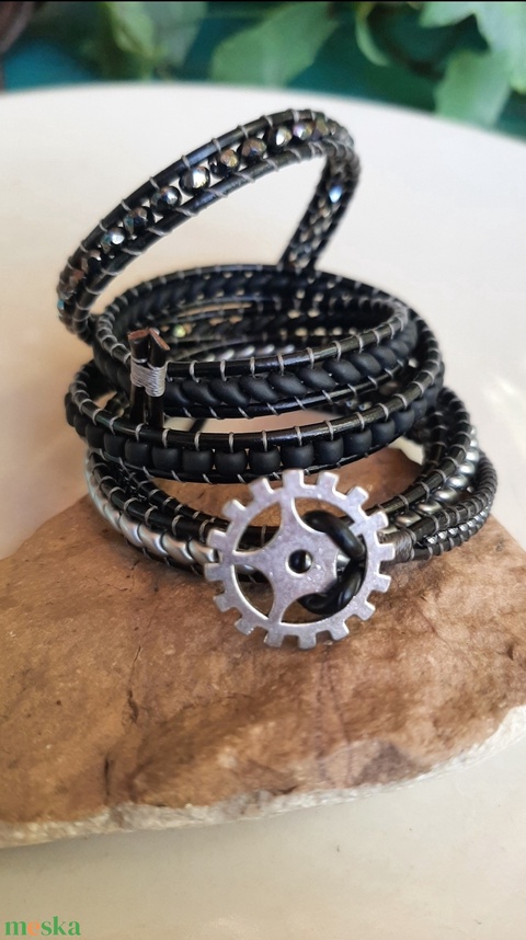 - Anyaga: bőr, gyöngyök, fém kapocs, bőrvarró cérna