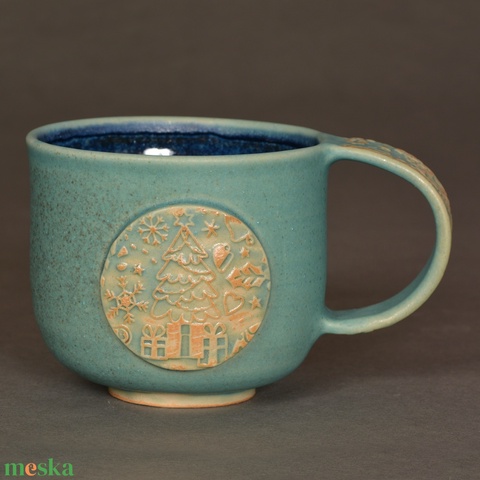 Kerámia bögre, karácsonyi hangulat(kék-türkiz)