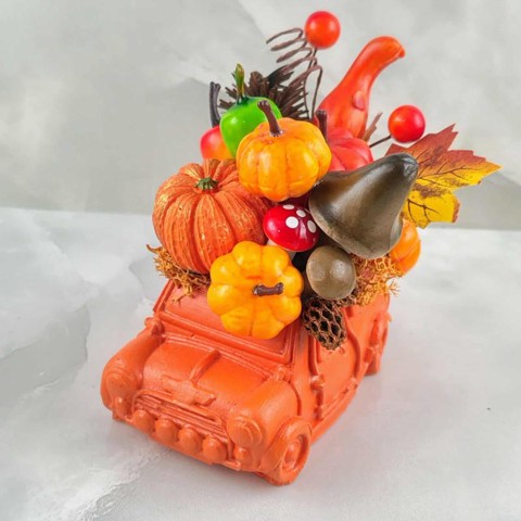 Őszi autó kaspó asztaldísz