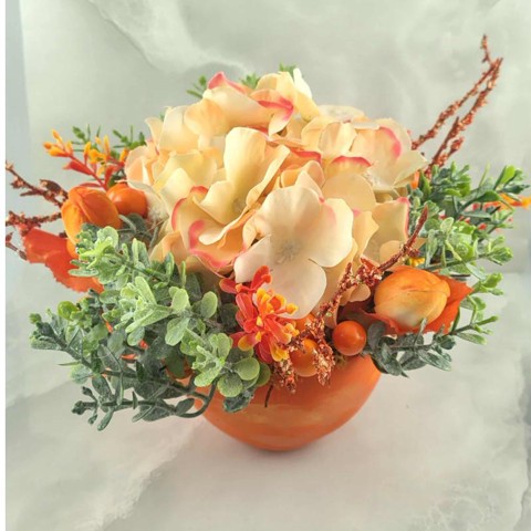Őszi - hortenziás kerek váza