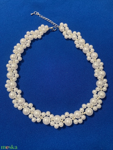 Elegáns gyöngy nyaklánc, ezüst-fehér színben