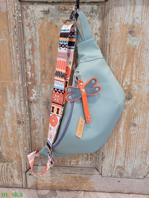 Türkiz táska. mintás heveder. Övtáska fazonú műbőr táska, válltáska , vállon átvethető táska