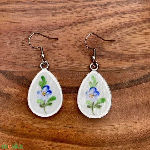 Herendi mentett darabok - porcelán fülbevaló - nemesacél csepp forma, nefelejcs