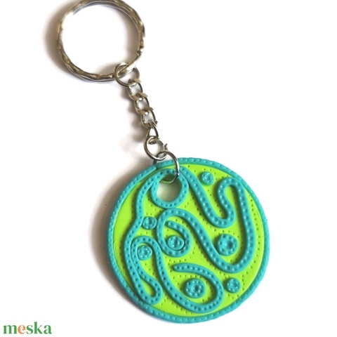 Kulcstartó, türkiz és zöld ékszergyurmából