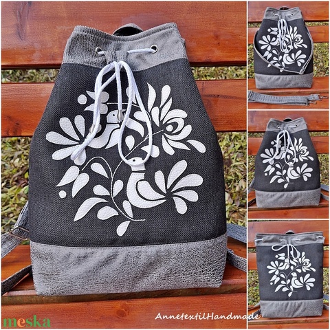 Pávás, népi virágos többfunkciós hátizsák/oldaltáska