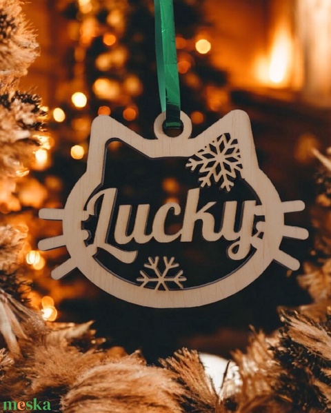 Egyedi cica fej formájú karácsonyfadísz – cicád nevével