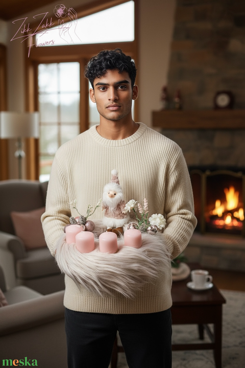 Rózsaszín Plüss Adventi Koszorú – Télapóval