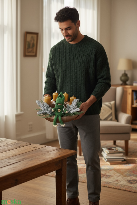 Zöld Téli Manós Adventi Koszorú – Arany Gyertyákkal
