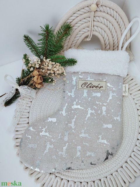 Mikulás csizma ezüst szarvasok