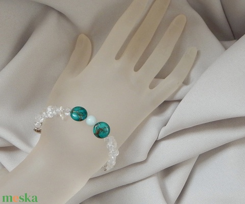 Ásványkarkötő hegyikristállyal, kék jáspis kövekkel és amazonit golyóval