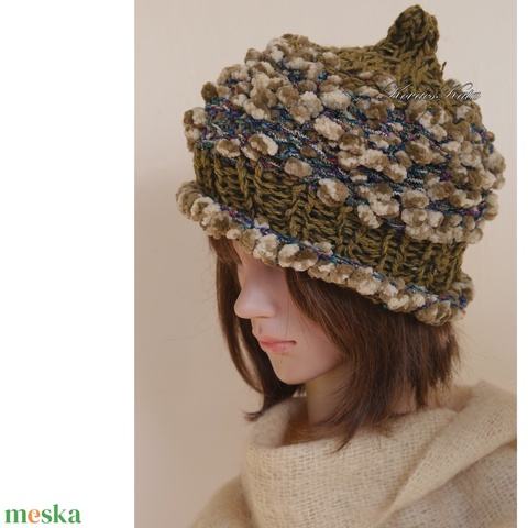 LUCA-SAPI / olív - bohém kézzel kötött gyapjú sapka KÉSZLETEN