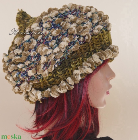 LUCA-SAPI / olív - bohém kézzel kötött gyapjú sapka