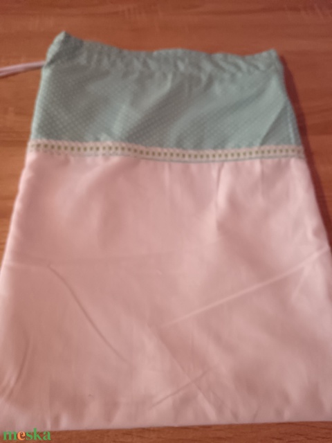 Kenyeres zsák. Nagy méretű 32x42 cm. Kívül vászon, csipke diszitéssel, belül könnyen tisztítható Pul anyag. Vasalni, szárító gépbe nem tehető.