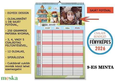 Fényképes családi rendező falinaptár – A3 méret - 9 minta