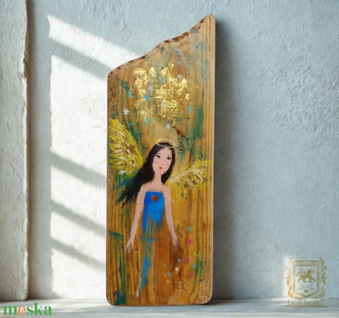 Arany szárny - Rusztikus Festett Fatábla - Falra akasztható - Ajándék ötlet - Angyal, Gyerekszoba