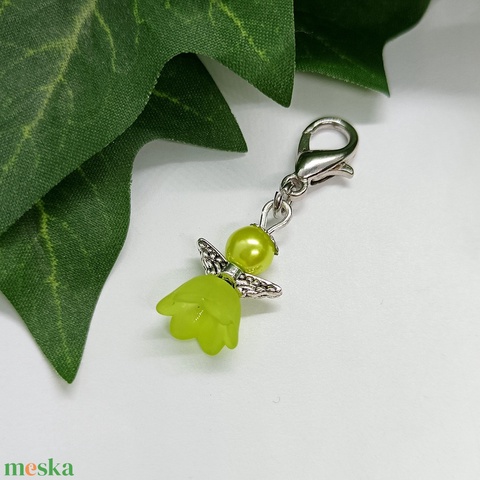 Világoszöld színű angyalka medálos kulcstartó, táskadísz