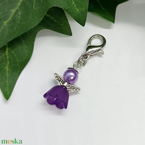 Lila színű angyalka medálos kulcstartó, táskadísz