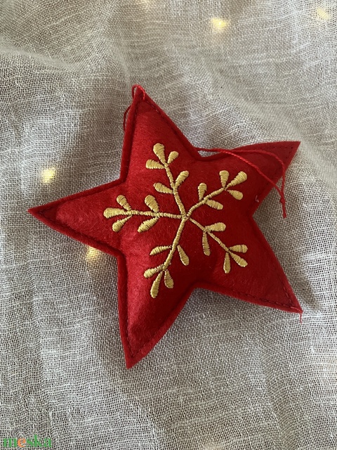 Kézzel hímzett arany mintás textilfilc csillag karácsonyfadísz