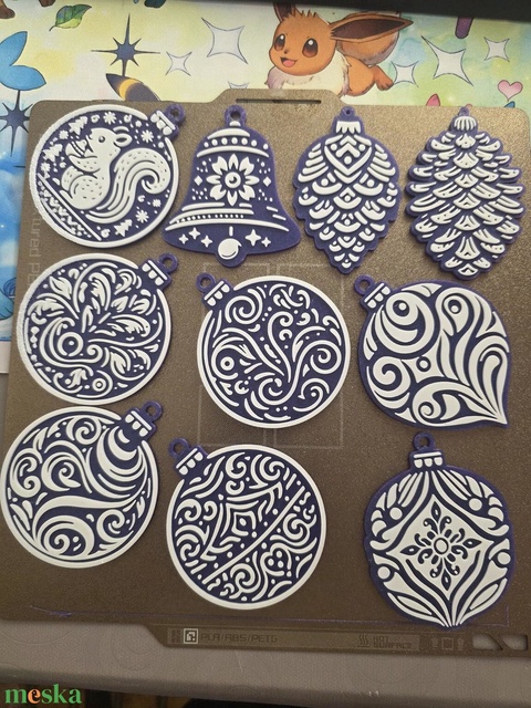Karácsonyfadísz szett – lila-fehér 3D nyomtatott (10 db)