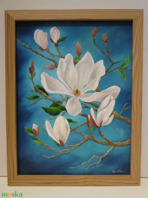 Éjféli magnóliák II. olajfestmény keretben
