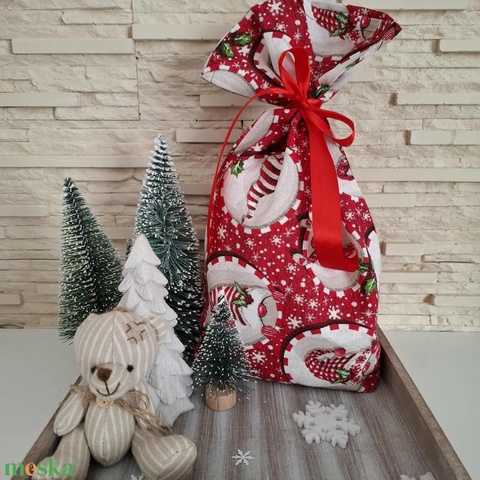 Mikulás zsák - manós, piros színvilágban