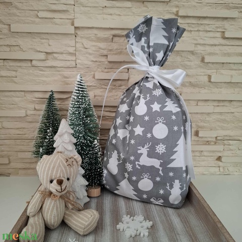 Mikulás zsák - ünnepi minta, fehér-szürke színvilágban