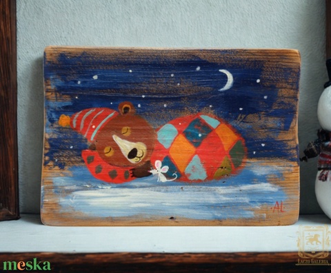 Téli álom - Rusztikus Fatábla, Vicces Ajándék ötlet - Egyedi Falidísz, Medve, Mackó, Kisegér