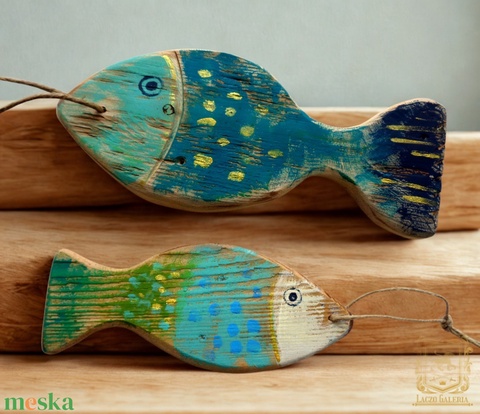 2 Aranyozott Rusztikus Fa Halacska - Ajándék ötlet, Gyerekszoba, Egyedi Falidísz, Hal