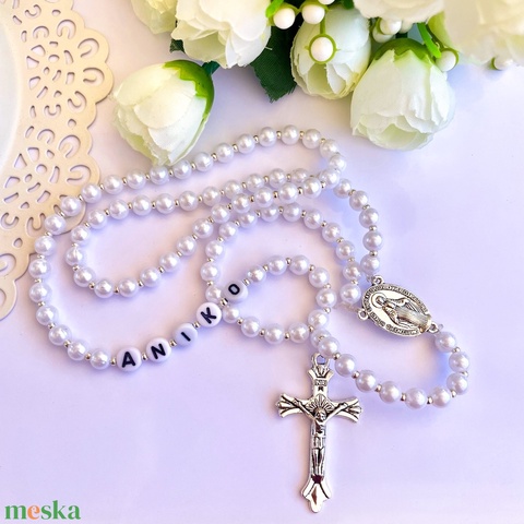 Egyedi gyöngyös rózsafüzér – személyre szabható névvel ????