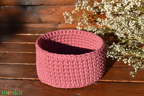 Horgolt kosár antik rózsaszín színben.