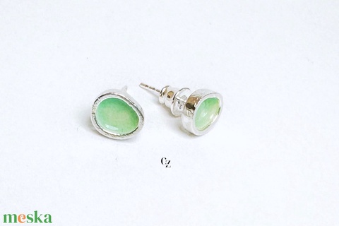 Ezüst, tűzzománc világoszöld színű fülbevaló