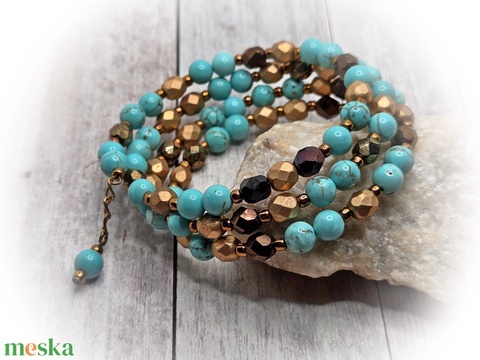 Türkiz-bronz-arany karkötő