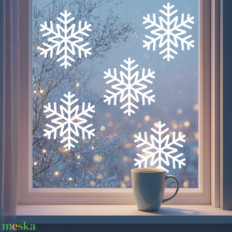 Fehér hópehely ablakmatrica csomag – fehér öntapadós fóliából, többféle méretben