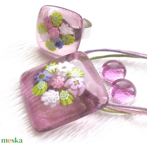 NEMESACÉL! Orgona csokor, üveg medál gyűrű és fülbevaló, ajándék ballagásra, névnapra, születésnapra.