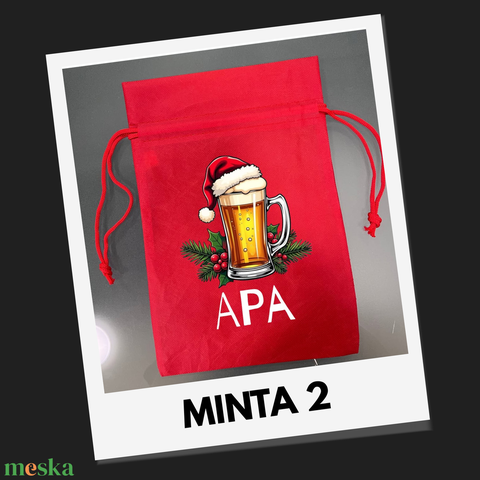 Nem kell sok, hogy valami személyes legyen.. Egy név, egy kép, egy apró részlet. A pillanat, amikor valaki felismeri a varázst egy gesztusban. Ezek az egyedi ajándék zsákok erről szólnak. Nem a díszről, nem a trendről, nem a tömeggyártásról... Hanem arról, hogy időt szánsz valakire. Minden darab egy kicsit más, egy kicsit különleges. Ahogy azok a szeretteink is, akiknek szívből adjuk őket! Tedd különlegessé az ajándékozást egy névre szóló, kézzel készített Mikulás zsákkal, ami egyszerre elegáns, személyes és tartós. A GDekor Stúdió Mikulás zsákjai piros és fehér színben, 20×30 cm-es méretben elérhetők – ideális választás kisebb ajándékok, édességek vagy apró figyelmességek csomagolásához. Minden zsákot egyedi DTF nyomattal készítünk, amely kiemelkedően részletgazdag és rendkívül tartós. A nyomat nem fakul, nem pereg le, hosszú éveken át megőrzi színeit – így a zsák évről évre újra elővehető. Teljesen személyre szabható: Kérhető egyedi névvel, felirattal vagy rövid üzenettel, így minden darab igazán egyedi és személyes ajándék lehet – akár gyerekeknek, barátoknak vagy kollégáknak. Fenntartható alternatíva: A Mikulás zsák újrahasznosítható és újrahasználható, így nemcsak esztétikus, hanem környezettudatos választás is. Termékjellemzők: elérhető színek: piros és fehér méret: 20×30 cm anyag: erős, tartós textil nyomat: DTF technológiával készült, részletgazdag és időtálló kérhető egyedi névvel, szöveggel, felirattal kézzel készített, magyar termék Miért válaszd a GDekor Stúdió Mikulás zsákját? Mert nem csak egy csomagolásról van szó – hanem egy apró, szeretettel készült részletről, ami emlékké válik. Tökéletes választás, ha idén személyesebb, tudatosabb ajándékot keresel. A megjegyzés rovatban mindenképpen tüntesd fel a választott MINTA számát és a termék színét!