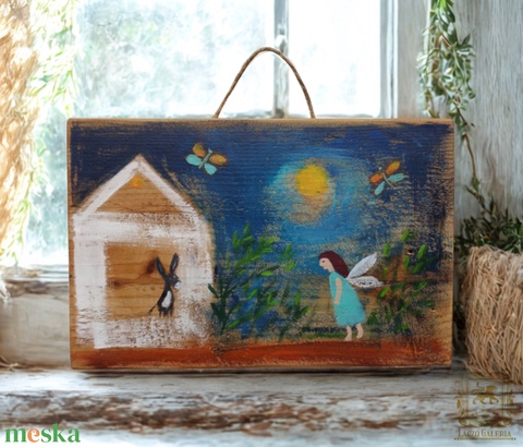 Kiscsacsi és lepketánc - Rusztikus Festett Fatábla - Falra akasztható - Karácsonyi Ajándék ötlet - Angyal, Gyerekszoba