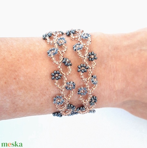 Gyöngyös két soros karkötő vagy rövid állású nyaklánc - szürke, réz