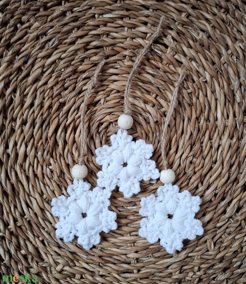 Karácsonyi dísz - horgolt hópehely fehér 3 darab