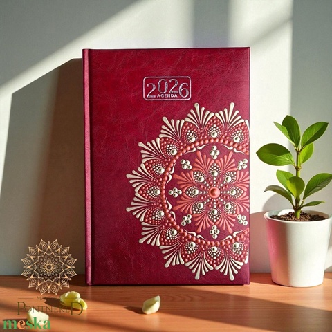 Nagy méretű (A/5) 2026-os mandala határidőnapló (bordó)