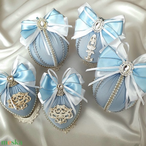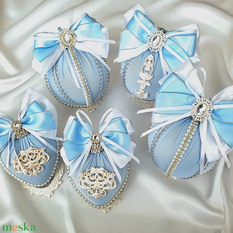 Kézzel készített világoskék selyem karácsonyfadísz szett – 5 elegáns dísz ajándékdobozban, karácsonyi dekoráció