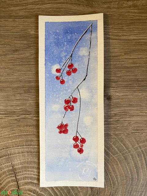 Téli mintájú bogyós könyvjelző kék háttérrel
