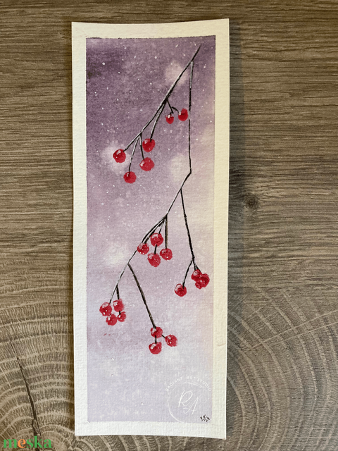 Téli mintájú bogyós könyvjelző lila háttérrel